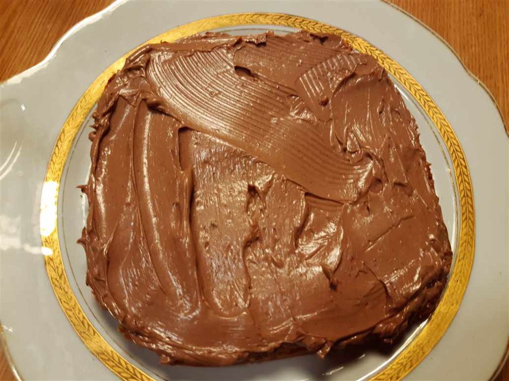 Turnăm compoziția într-o tavă cu pereții detaşabili în care am pus hârtie de copt ,apoi la cuptor, 160 de grade, timp de 25-30 min de minute. Când blatul s-a copt, îl scoatem și îl lăsăm cel puțin 30 minute să se răcească, îl tăiem în 2 straturi și îl lăsăm să se răcească complet.